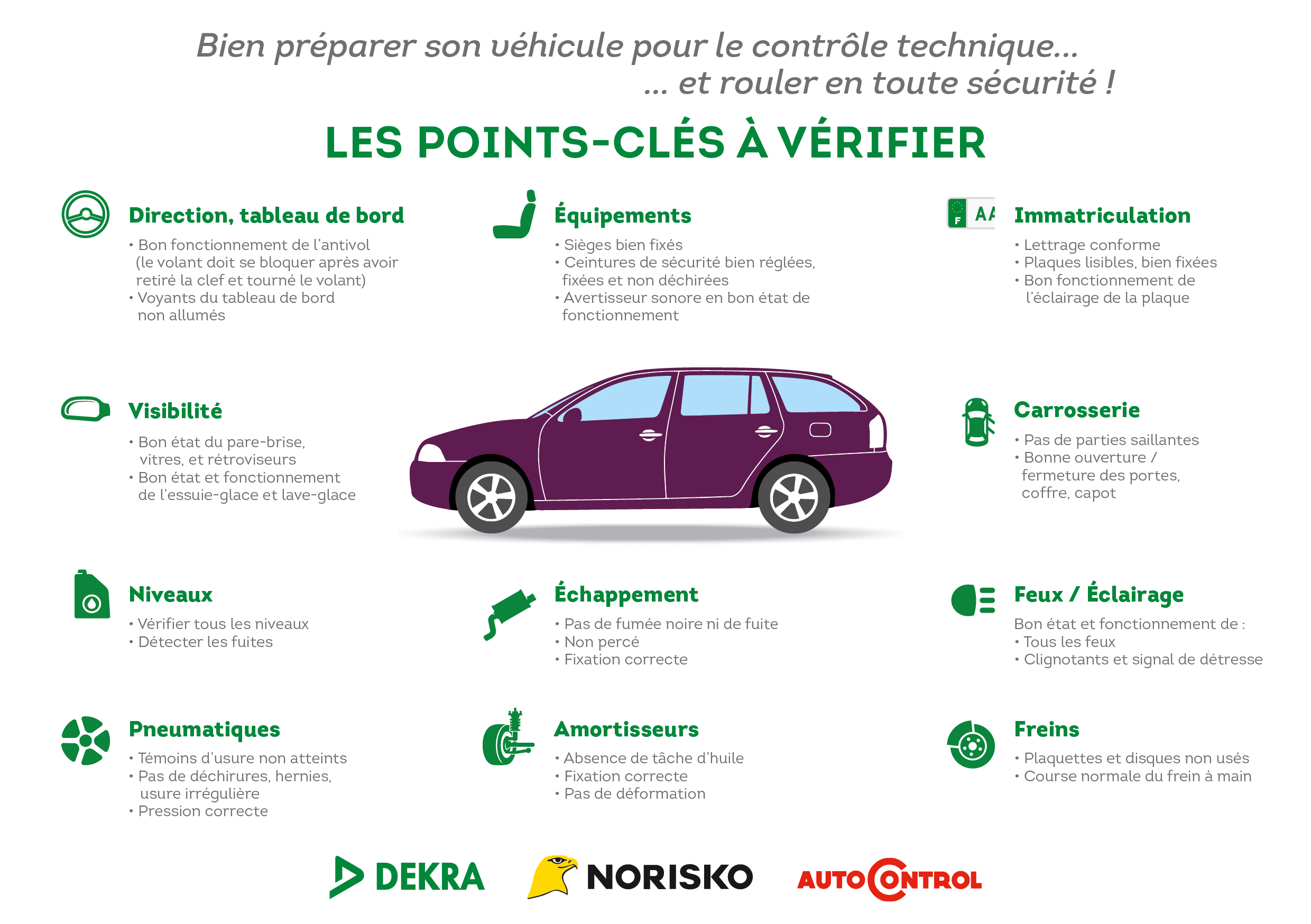 Avant le passage au contrôle technique, il est conseillé de vérifier :