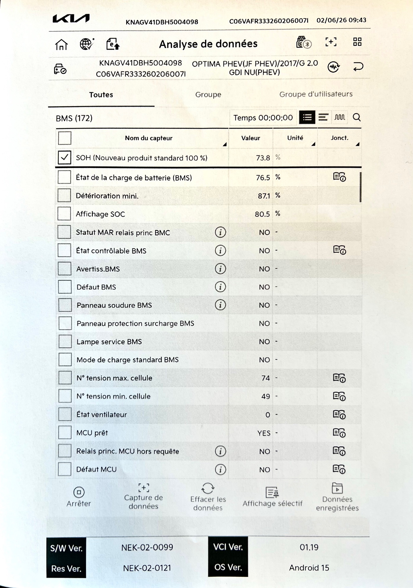 SOH signifie State of Health, soit “état de santé” de la batterie.